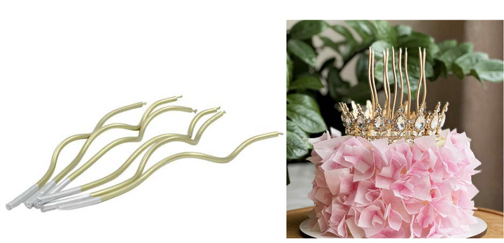 Set 6 Lumanari pentru Tort, Ondulate, Lungi, 12 cm, Auriu